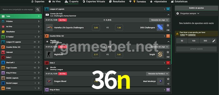 O 36n oferece uma grande seleção de opções de apostas em e-sports com probabilidades competitivas